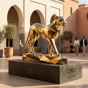 Avec ses formes facettées et son style audacieux, cette sculpture devient un véritable élément décoratif haut de gamme. Elle trouve parfaitement sa place dans un jardin, une terrasse, une entrée de villa, un hall d’hôtel, un showroom ou un espace professionnel à la recherche d’une touche artistique forte.