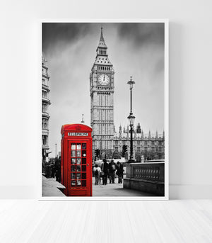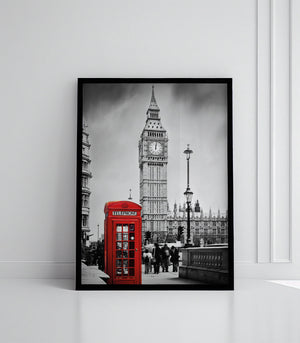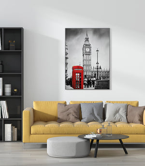 Ajoutez une touche iconique à votre décoration avec ce tableau mettant en vedette la célèbre cabine téléphonique rouge et Big Ben en arrière-plan. Ce contraste saisissant entre le noir et blanc et le rouge vif crée une ambiance nostalgique et élégante, parfaite pour les amoureux de Londres et du style classique. Cette œuvre en toile de qualité sublime vos murs tout en racontant une histoire intemporelle de la capitale britannique.