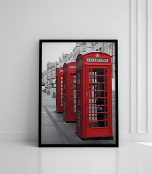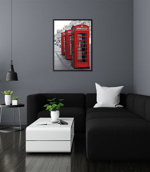 Apportez une touche de nostalgie et de charme britannique à votre intérieur avec ce tableau captivant représentant une rangée de cabines téléphoniques rouges emblématiques. Ce contraste saisissant entre le rouge éclatant et les tons neutres de l'arrière-plan crée une ambiance rétro élégante. Parfait pour les amateurs d'art urbain et de culture anglaise, cette toile est un choix idéal pour ajouter une touche unique et sophistiquée à votre décoration.
