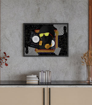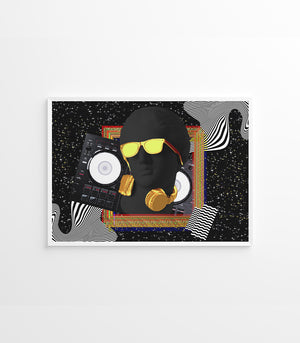 Laissez-vous séduire par l'élégance et l'audace de ce tableau DJ Gold. Avec un buste noir profond orné de lunettes et de casques dorés, cette œuvre incarne le contraste parfait entre le luxe et la modernité. La platine de DJ en arrière-plan et les motifs géométriques dynamisent l'ensemble pour un rendu spectaculaire. Idéal pour un intérieur moderne, ce tableau est une ode à l'art et à la musique contemporaine.