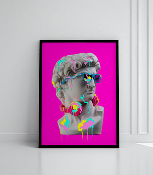 Ajoutez une explosion de couleurs et de créativité à votre décoration avec ce tableau moderne qui fusionne l’art classique et le street art. Cette statue revisitée, ornée de lunettes, d’un casque audio rose et de coulures multicolores, incarne une expression vibrante et dynamique de la culture contemporaine. Idéal pour un intérieur audacieux et artistique, ce tableau deviendra une pièce maîtresse de votre espace.