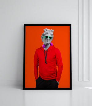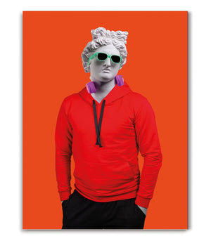 Ajoutez une touche de modernité et de créativité à votre décoration avec ce tableau audacieux mêlant art classique et style pop. Cette statue antique revisitée, habillée d’un hoodie rouge vif et accessoirisée de lunettes et d’écouteurs colorés, incarne le mélange parfait entre tradition et culture contemporaine. Parfait pour un espace moderne ou décalé, ce tableau apporte une énergie vibrante et unique à votre intérieur.