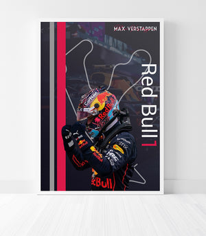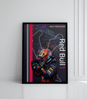 Ce tableau décoratif célèbre Max Verstappen, pilote Red Bull et multiple champion du monde de Formule 1. Avec son casque emblématique et sa pose victorieuse, ce design moderne allie dynamisme et élégance, évoquant la vitesse et la passion de la course automobile. Parfait pour les passionnés de F1 et les amateurs de décoration sportive, ce tableau apporte une touche audacieuse à votre intérieur.