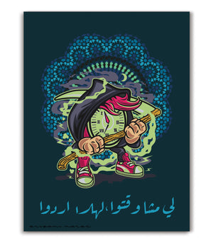 Ce tableau décoratif marocain, inspiré de l'expression "لي مشا وقتوا، لهلا يردوا", symbolise le passage du temps et la notion de détachement. La représentation créative d'une horloge personnifiée invite à réfléchir sur l'importance de laisser le passé derrière et de profiter du moment présent. Idéal pour décorer un salon, un bureau ou tout autre espace de vie, ce tableau ajoute une touche de profondeur culturelle et artistique à votre intérieur.