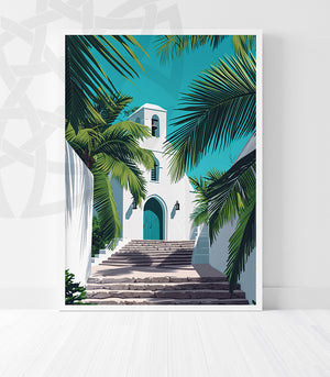 Ce tableau décoratif met en lumière la beauté et la symétrie parfaite des arches marocaines ornées de mosaïques détaillées et de couleurs éclatantes. Le jeu de perspectives invite à un voyage visuel à travers l’architecture traditionnelle de Marrakech, riche en histoire et en élégance. Parfait pour un salon, une salle de réunion ou un espace d’accueil, ce tableau apporte une touche de raffinement et de profondeur à votre intérieur.
