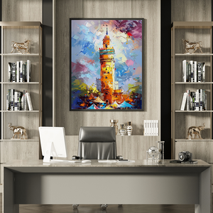 Ce tableau éclatant représente la célèbre mosquée Koutoubia de Marrakech, baignée dans une lumière chaude et colorée. Utilisant une technique de peinture expressive et dynamique, l'artiste mêle les couleurs vives et les coups de pinceau audacieux pour donner vie à ce symbole emblématique du Maroc. Le contraste des couleurs chaudes et froides, allié aux textures riches, crée une impression de mouvement et de vitalité. Cette œuvre d'art transforme non seulement un espace mais invite également à la contemplation de l'héritage historique et architectural marocain. Idéal pour une pièce maîtresse dans un bureau ou un salon, ce tableau inspire admiration et conversation..