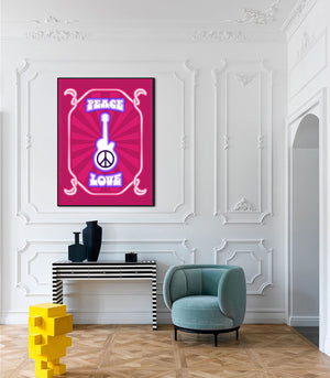 Plongez dans l'esprit des années 70 avec cette affiche Peace & Love de la collection Psyché Love. Avec ses couleurs vives et son style rétro psychédélique, ce tableau rend hommage aux valeurs de paix et d'amour. Parfait pour ajouter une touche vintage et positive à votre décoration intérieure, cette affiche s'intègre aussi bien dans un salon que dans une chambre. Pour les amoureux de l'art psychédélique et de la culture Peace & Love, cette œuvre inspirante est un rappel intemporel de liberté et de joie de vivre.