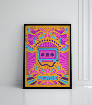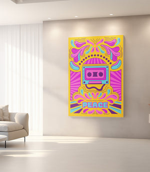 Ce tableau "Peace Cassette" vous ramène à l'époque des cassettes et de la culture musicale des années 70, avec des motifs psychédéliques et des couleurs vibrantes. Parfait pour les amoureux de la musique et du vintage, ce cadre est idéal pour ajouter une touche nostalgique et joyeuse à votre décoration intérieure. Transformez votre espace avec une atmosphère rétro qui inspire la paix et l'harmonie.