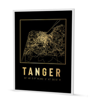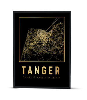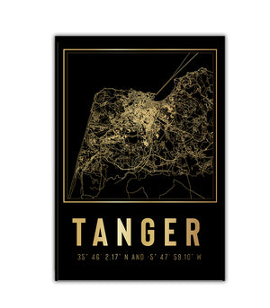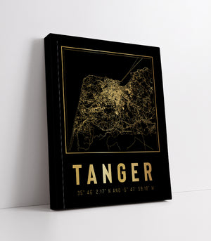 Ce tableau décoratif saisit l'âme cartographique de Tanger, une ville marocaine riche d'histoire et de culture. En noir et blanc, le design épuré révèle les intrications des rues et des avenues, formant un tissu urbain complexe qui est le cœur battant de la cité. Les coordonnées géographiques précises en bas du tableau ancrent l'œuvre dans le concret, guidant le spectateur à travers le labyrinthe de cette métropole cosmopolite.