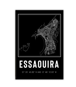 Ce tableau décoratif capture l'essence envoûtante d'Essaouira à travers ses tracés urbains, formant un véritable labyrinthe architectural. Chaque ligne et chaque courbe révèlent les ruelles tortueuses, les murailles anciennes et les détails pittoresques qui caractérisent cette ville côtière emblématique du Maroc. La cartographie minutieuse invite à une exploration visuelle, où chaque quartier raconte une histoire captivante et chaque rue évoque un sentiment d'aventure.