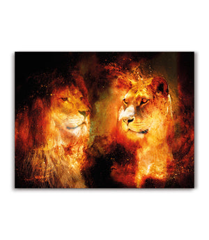 Exprimez la puissance de l’amour et de la majesté avec le tableau Couple de Lions Cosmiques de la collection Holistique. Ce tableau décoratif, imprimé sur velours, présente un lion et une lionne entourés d’une lumière incandescente, symbolisant la force, la loyauté et l’unité. Les tons de feu et le fond cosmique créent une atmosphère envoûtante qui enrichira la décoration de votre salon, chambre ou bureau. Une œuvre inspirante qui incarne la noblesse et l'harmonie, parfaite pour ceux qui cherchent à apporter une énergie puissante et sereine dans leur espace.