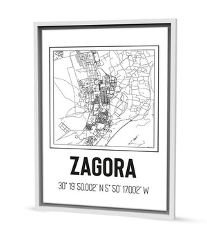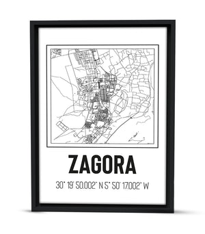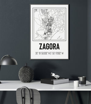Cette image est une représentation artistique en noir et blanc de la ville de Zagora, située au cœur du désert marocain. Elle capture avec précision les rues sinueuses et les oasis verdoyantes qui font le charme de cette ville emblématique. Les détails minutieux, des dunes de sable aux architectures traditionnelles, donnent vie à cette œuvre et vous transportent au cœur de l'aventure et de l'exotisme.