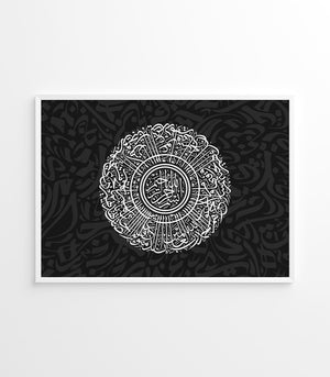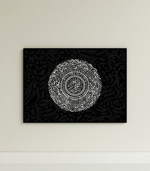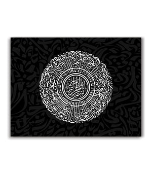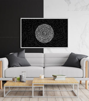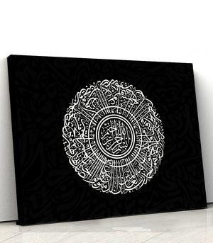 Ce tableau représente artistiquement le verset 31 de la sourate Ibrahim en calligraphie arabe dorée, qui est un des arts traditionnels les plus respectés dans la culture islamique. La calligraphie est arrangée en forme circulaire, symbolisant l'unité et l'éternité, avec le verset qui encadre un centre vide, peut-être représentant le concept de la transcendance divine. Le choix du doré sur fond blanc évoque la pureté, la lumière et la valeur spirituelle du texte coranique, invitant à la réflexion et à la méditation profonde sur les paroles d'Allah. Ce tableau n'est pas seulement une décoration, mais une expression de dévotion et une fenêtre sur la spiritualité islamique.