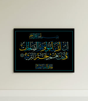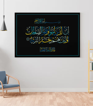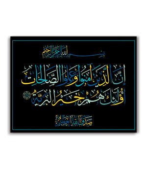 La calligraphie islamique, avec ses lignes fluides et ses formes harmonieuses, est plus qu'une simple décoration. Elle véhicule des messages de paix, de sagesse et de spiritualité, enrichissant l'âme tout en embellissant les murs de votre salon.