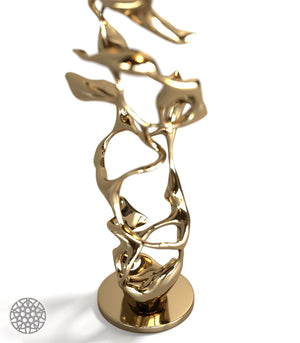 Apportez une touche d'élégance et de raffinement à votre espace avec cette sculpture abstraite en laiton, une pièce unique conçue pour sublimer tout intérieur ou extérieur. Son design fluide et moderne en fait un élément de décoration sophistiqué, parfait pour un hall, un bureau ou un salon prestigieux.