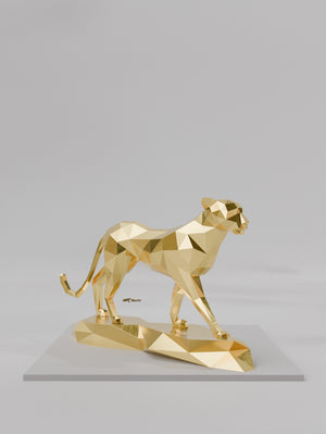 Sublime fusion de dynamisme et d’élégance, cette sculpture de guépard en design polygonal incarne la vitesse, la légèreté et la puissance à l’état pur. Ses facettes géométriques précises capturent le mouvement avec modernité, faisant de cette œuvre un symbole de force silencieuse et de raffinement.