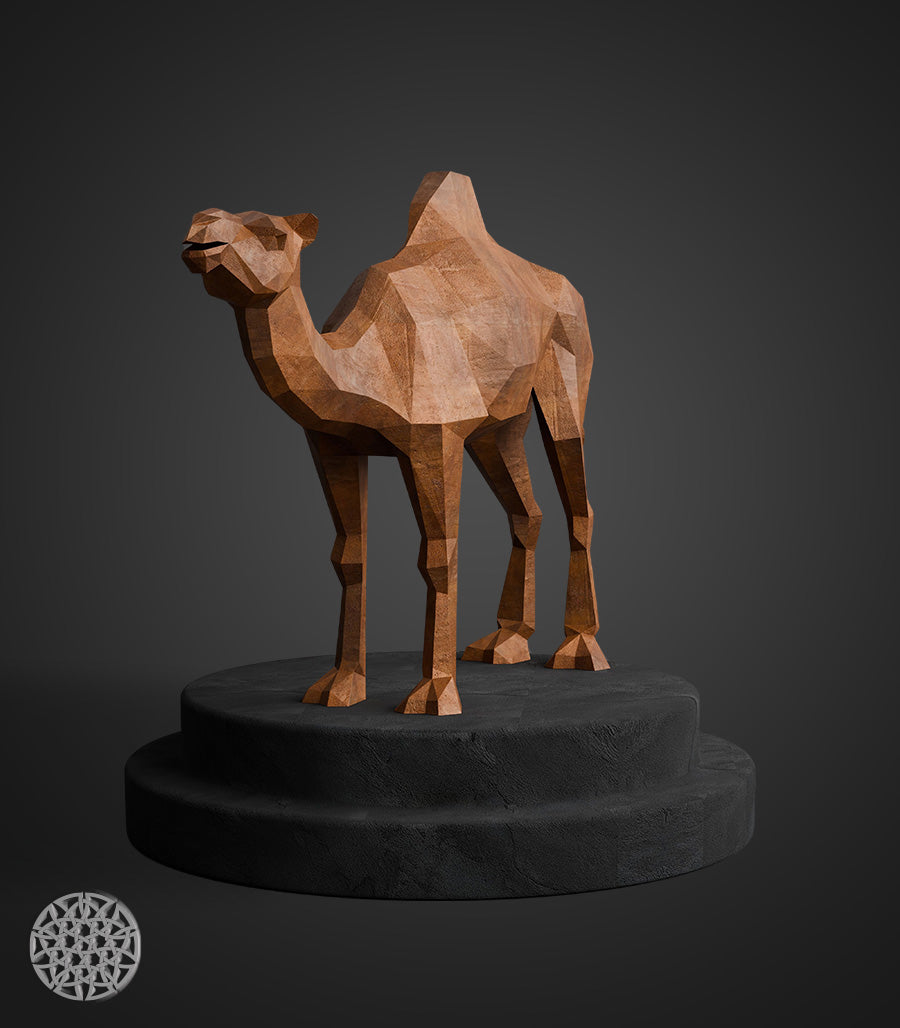 Ajoutez une touche d’authenticité et de modernité à votre décoration avec cette sculpture métallique en acier corten, représentant un chameau majestueux en design polygone et low poly. Son effet patiné confère une esthétique brute et chaleureuse, idéale pour une décoration intérieure et extérieure inspirée du désert et des paysages orientaux.