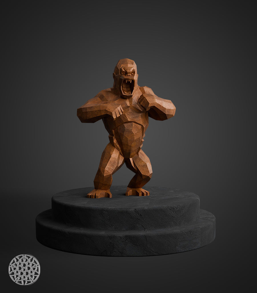 Ajoutez une touche de puissance et de modernité à votre espace avec cette sculpture métallique en acier corten, représentant un gorille rugissant en design polygone et low poly. Son allure imposante et son effet patiné confèrent une présence unique, parfaite pour une décoration intérieure et extérieure audacieuse et contemporaine.