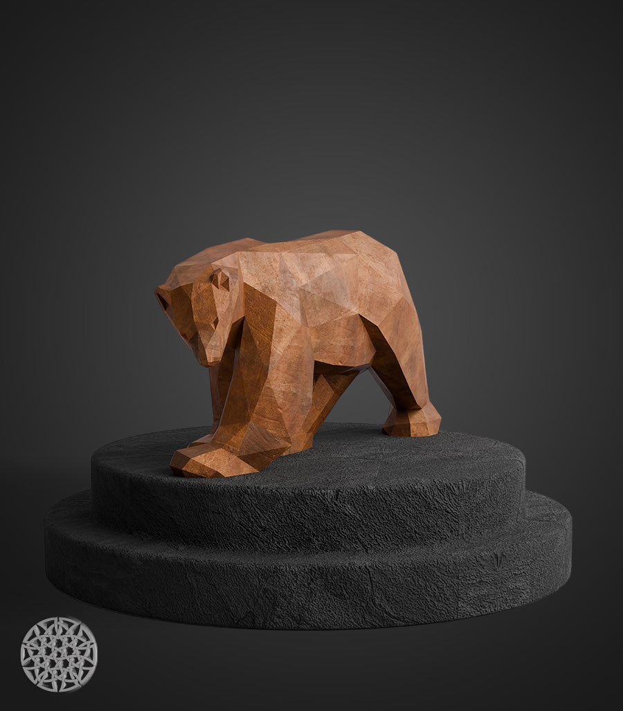 Ajoutez une touche de force et de caractère à votre décoration avec cette sculpture métallique en acier corten, représentant un ours en design polygone et low poly. Son aspect patiné confère une présence imposante et naturelle, idéale pour une décoration intérieure et extérieure audacieuse et contemporaine.