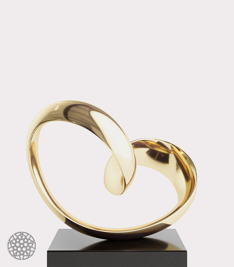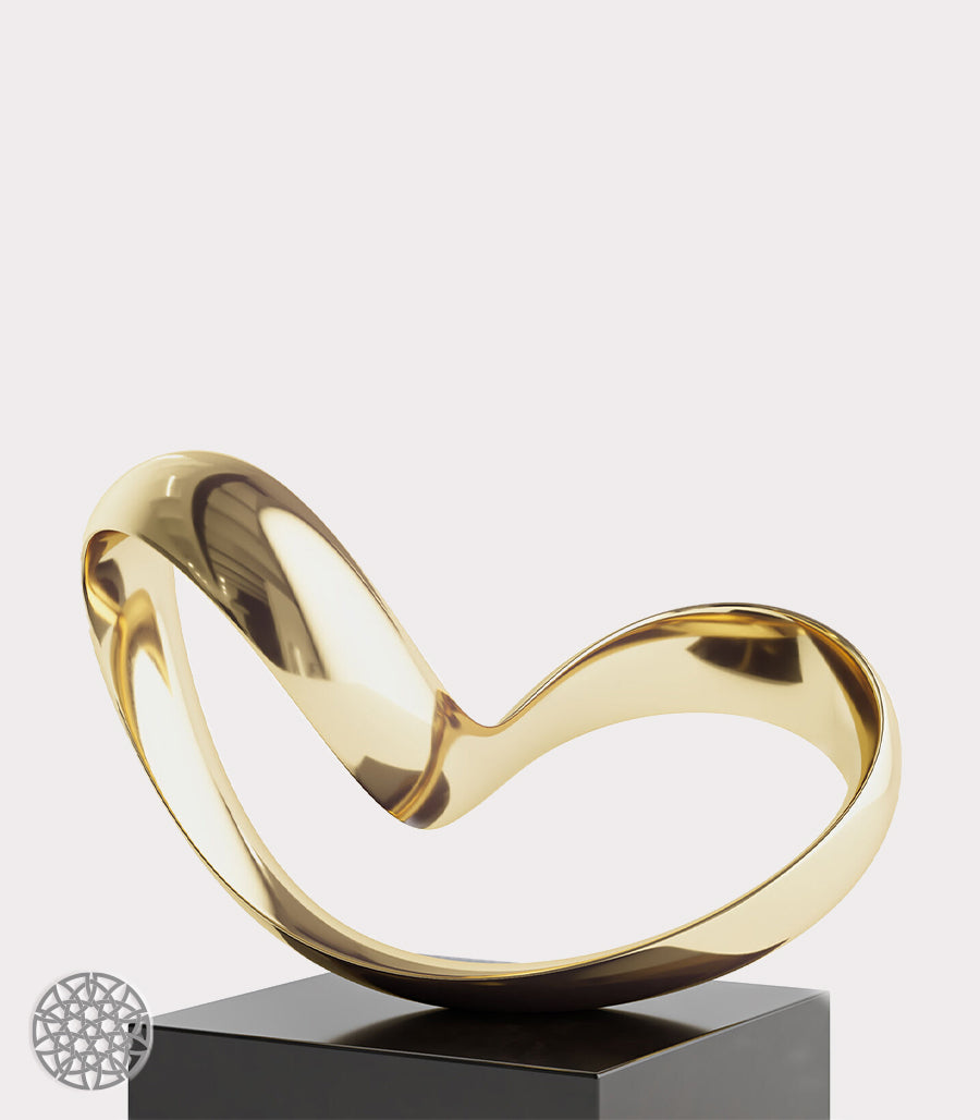 Ajoutez une touche de sophistication avec cette sculpture abstraite en laiton, une œuvre d’art contemporaine conçue pour sublimer vos espaces intérieurs et extérieurs. Son design fluide et minimaliste capture la lumière sous tous les angles, mettant en valeur l’éclat doré du laiton poli.