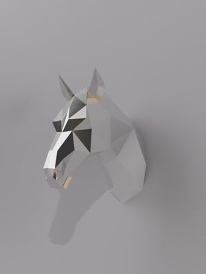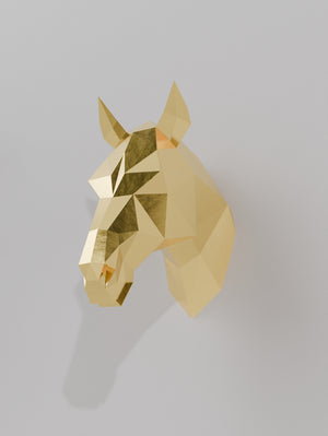 Épure et puissance se rencontrent dans cette tête de cheval murale au style polygonal. Chaque facette dessine une silhouette noble et contemporaine, évoquant la force tranquille et l’élégance naturelle de l’animal.