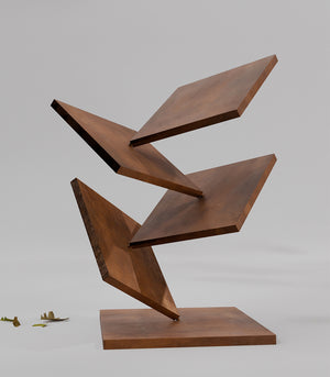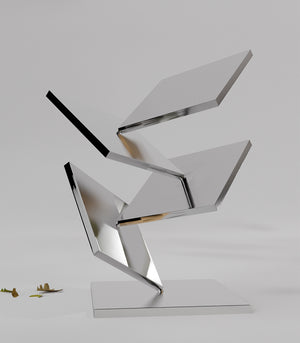 Composéedeformesangulairessuperposéesavecaudace,lasculptureFragmentd'Élancaptel’instantd’unmouvementfigédansl’espace.Àlafoisbruteetsophistiquée,elleexplorel’équilibreinstable,latensionetlalégèretédansunjeudevolumesabstraits.Chaqueface,chaqueangleréfléchitlalumièredemanièreunique,invitantàlacontemplation.