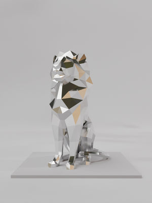 mposante et élégante, cette sculpture de lion assis au style polygonal incarne la sérénité, la force et l’autorité. Son assise fière et son regard tourné vers l’horizon évoquent la vigilance d’un gardien intemporel. Chaque facette angulaire accentue le caractère sculptural de l’œuvre, la plaçant à mi-chemin entre l’art moderne et le symbolisme ancestral.