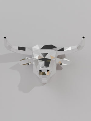 Force brute, noblesse et design contemporain se rencontrent dans cette sculpture polygonale de tête de taureau. Composée de facettes géométriques audacieuses, elle incarne puissance, détermination et caractère – des qualités intemporelles traduites en une œuvre d’art moderne.