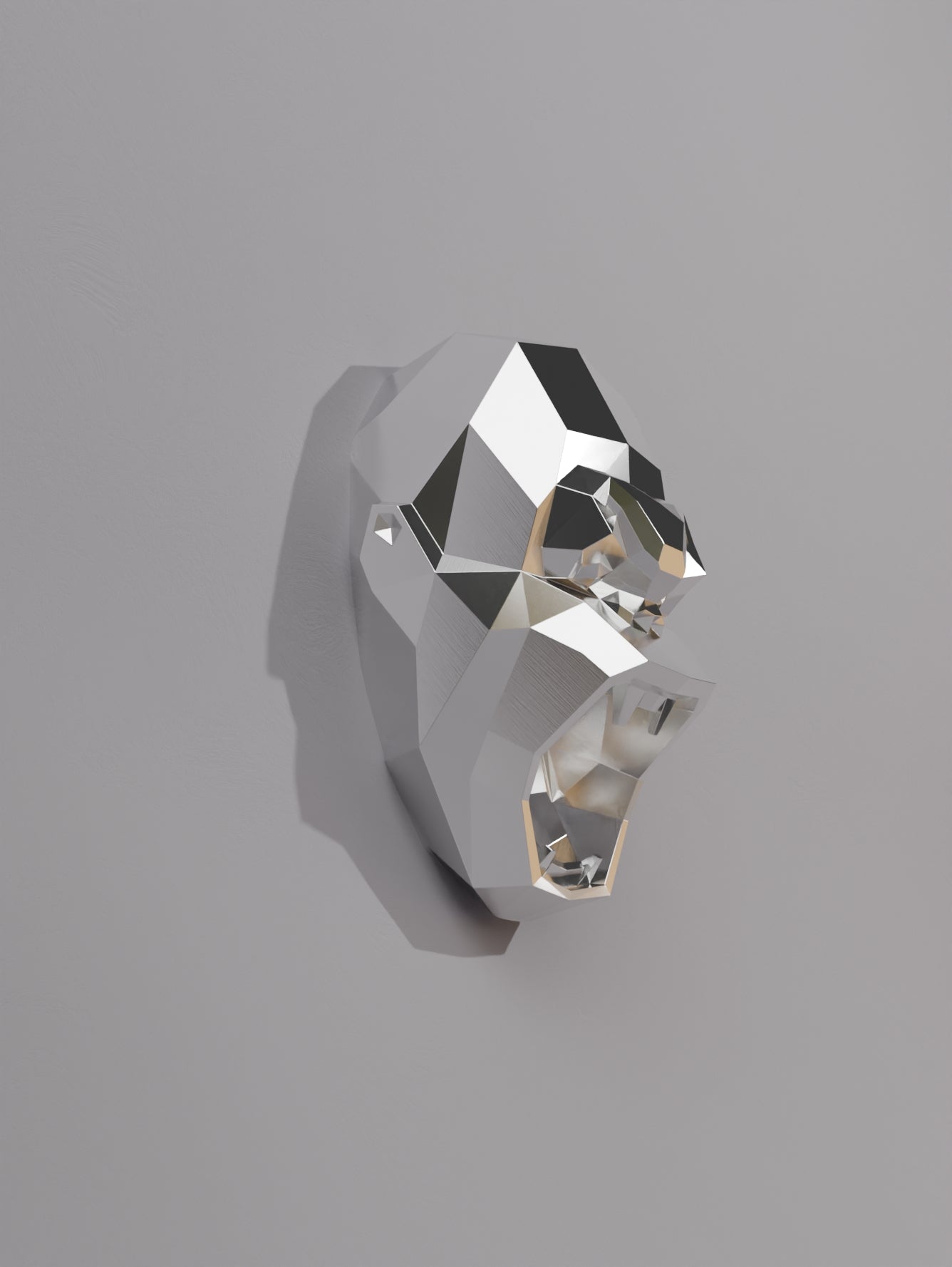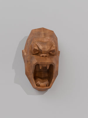 Brutale, expressive et puissamment stylisée, cette tête de gorille rugissante en design géométrique capture l'instant de rage pure avec une force sculpturale saisissante. Fixée au mur, elle devient une pièce centrale audacieuse, entre art contemporain et puissance animale.