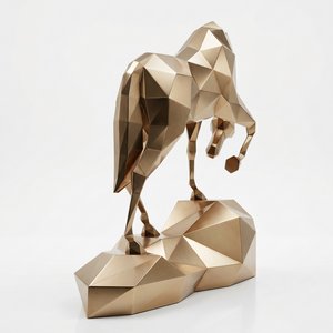 Découvrez cette sculpture de cheval en origami métallique, une sculpture contemporaine en acier inoxydable qui associe puissance animale, design géométrique et élégance moderne. Avec sa silhouette majestueuse et ses formes facettées, cette sculpture design devient un élément décoratif fort pour les espaces intérieurs prestigieux. Idéale pour les passionnés de sculpture moderne, de sculpture animale design et d’objets d’art uniques, cette pièce apporte à votre espace une présence artistique raffinée, dynamique et résolument intemporelle.