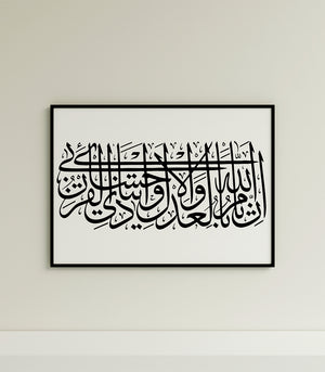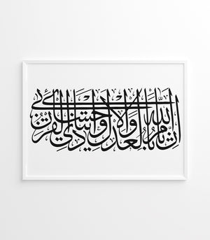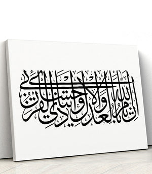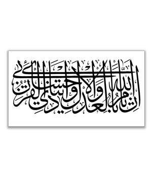 Cette œuvre est un bel exemple de calligraphie arabe, souvent utilisée dans l'art décoratif et pour la transcription de textes religieux ou poétiques. Pour un tableau de ce genre, qui semble présenter une écriture élégante et fluide.