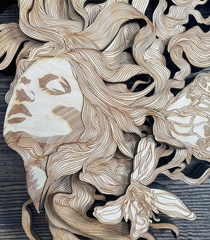 Sublimez votre espace avec "Dame Orchidée", une œuvre d'art mural en bois 3D multicouche qui capture la délicate fusion de la nature et de la féminité. Cette création saisissante représente une figure de dame ornée d'orchidées, avec des mèches de cheveux qui se transforment en racines et branches, symbolisant la croissance et la connexion avec la nature.