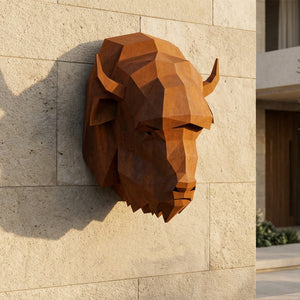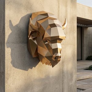 Affirmez le caractère de votre décoration avec notre tête de bison en origami, une sculpture murale au design géométrique moderne et audacieux. Inspirée des formes facettées de l’origami, cette pièce artistique revisite la puissance du bison à travers une silhouette structurée, contemporaine et élégante.