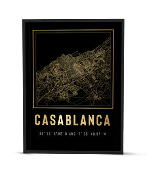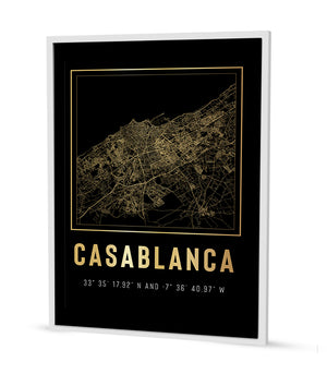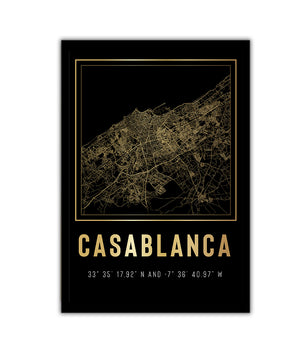 Ce tableau décoratif capture la beauté complexe de la cartographie urbaine de Casablanca, la ville emblématique du Maroc. Les tracés minutieusement représentés révèlent les méandres des rues, les quartiers dynamiques et les symboles emblématiques de la ville. Chaque détail cartographique est une invitation à explorer la diversité architecturale et culturelle de Casablanca.