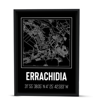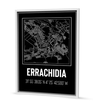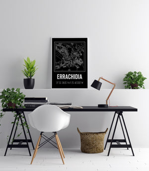 Ce tableau élégant capture la complexité et l'organisation des rues et avenues d'Errachidia, une ville marocaine richement tissée dans l'histoire et la culture. Présenté en noir et blanc, ce design moderne offre une représentation stylisée et géométrique qui transforme la cartographie urbaine en art mural contemporain. Les coordonnées précises ajoutent une touche de personnalisation, faisant de cette œuvre une pièce de conversation unique et éducative, parfaite pour tout espace cherchant à allier esthétique et signification géographique.