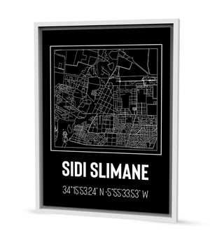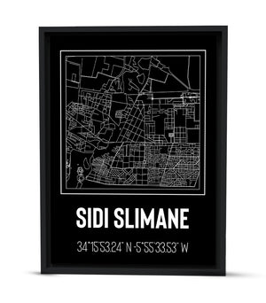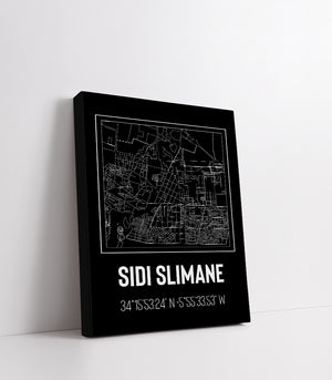 Ce tableau décoratif capture l'essence géométrique et structurée de Sidi Slimane à travers un design épuré et moderne. Chaque ligne et chaque contour représentent fidèlement les rues et les avenues qui composent le tissu urbain de cette ville. La palette de couleurs monochromatique accentue son élégance et sa simplicité, ce qui en fait une œuvre parfaite pour compléter une décoration contemporaine ou minimaliste. Les coordonnées géographiques soulignent son identité unique et ancrent l'œuvre dans le réel, invitant à la contemplation autant qu'à la découverte.