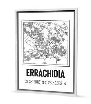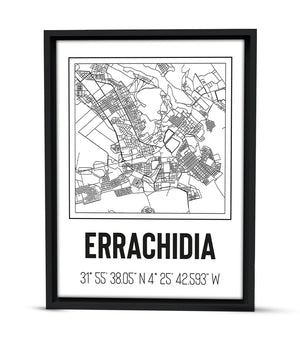 Ce tableau décoratif illustre le charme authentique des tracés urbains d'Errachidia, une ville emblématique du Maroc. Chaque ligne et chaque détail cartographique révèlent un riche patrimoine culturel, des anciennes ruelles aux quartiers animés. Cette représentation artistique offre une immersion dans l'histoire captivante d'Errachidia, où le passé et le présent se mêlent harmonieusement.